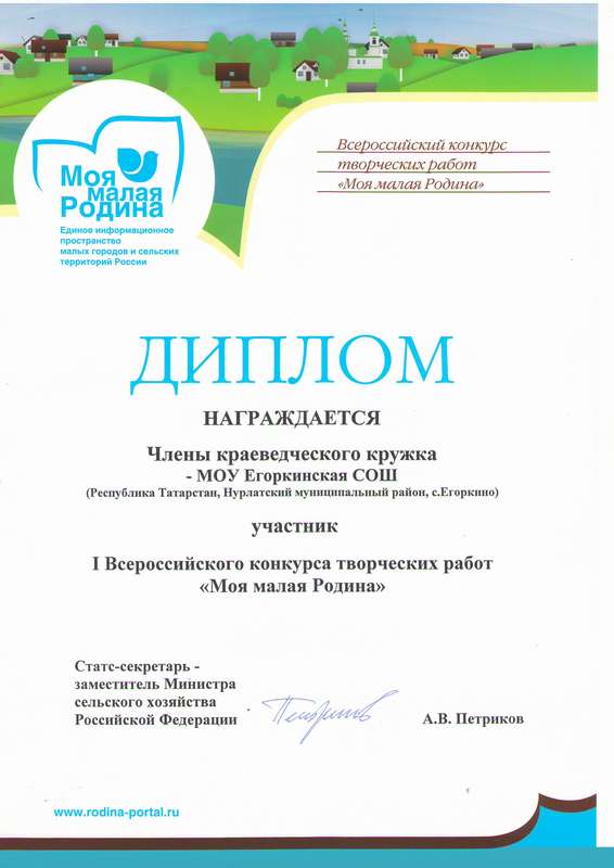 В 2010 году члены краеведческого кружка были награждены Дипломом участника IВсероссийского конкурса творческих работ «Моя малая Родина».