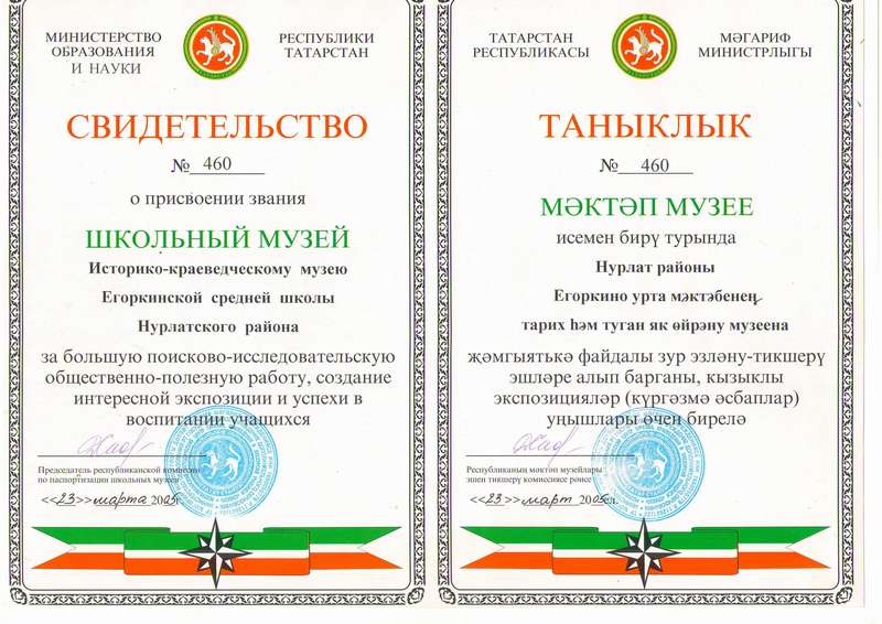В 2005 году музей получил статус историко-краеведческого музея (Свидетельство №460 от 23 марта, Министерство образования и науки Республики Татарстан)