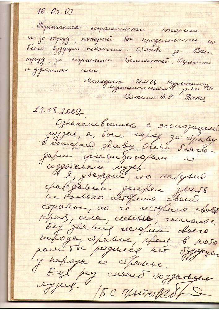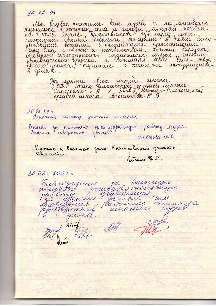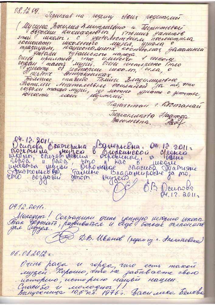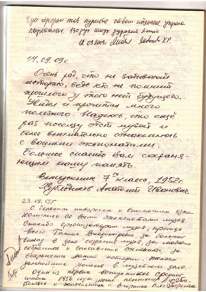 Записи из книги отзывов школьного краеведческого музея